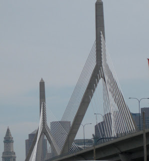 The Zakin bridge is now the grand entrance to the city, a bridge that I saw the progress of during all it's phases of construction while I lived nearby. That bridge is so iconic and breathtaking now; a proclamation that you have arrived in Boston that would make even Paul Revere proud. Illuminated at night, it is even more spectacular (night photo courtesy Boston Globe).